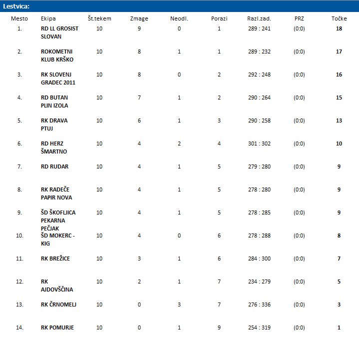 ŠD ŠKOFLJICA PEKARNA PEČJAK: Nered, Pangerc 1, Štubler, Regner 2, Cingesar 3, Kljun 6, Zgonec, Svečko 1, Vidmar 5, Marolt 1, Krese 8, Etling, Lipužič, Podmenik 2, Štavar, Janželj