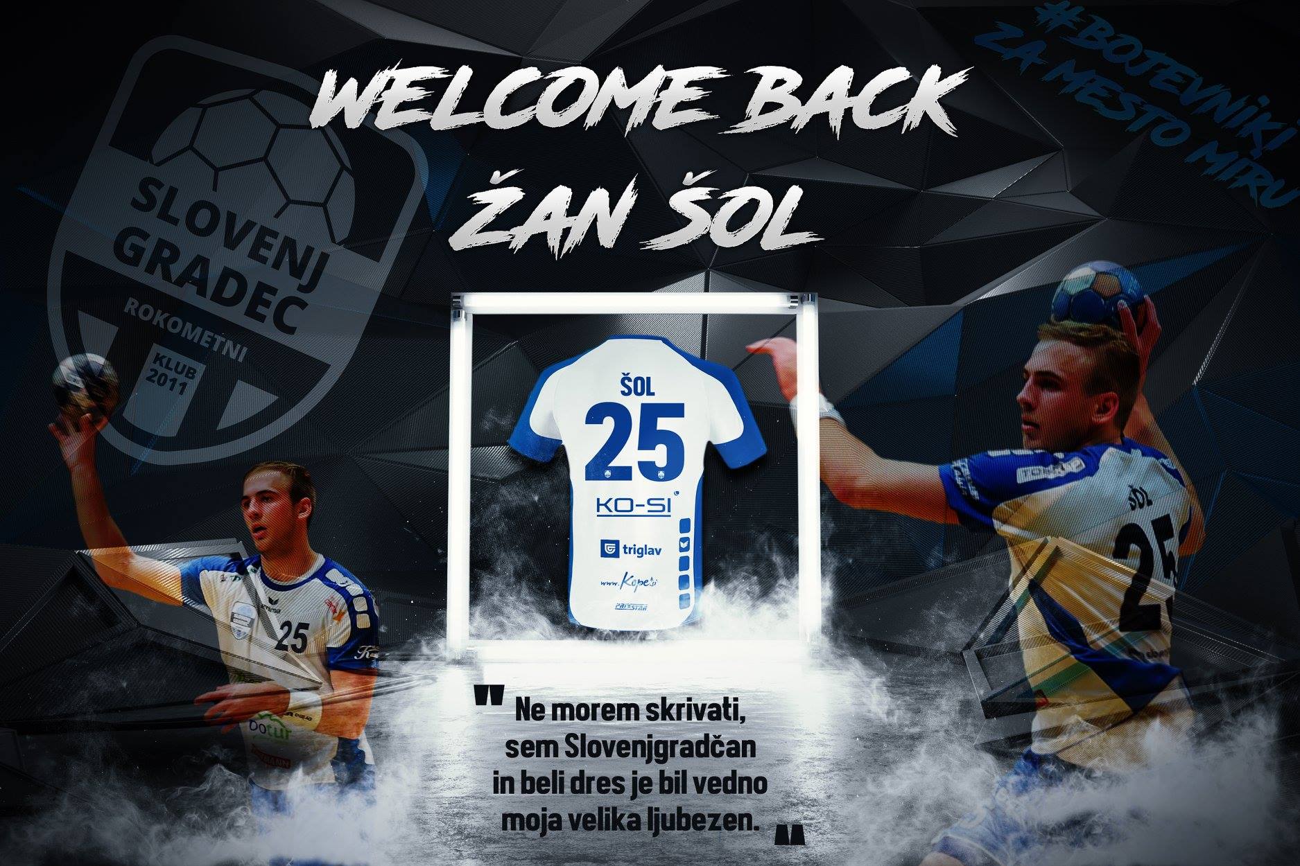 Slovenj Gradec dokazuje, da si zares želi priti nazaj med slovensko rokometno elito. Ekipa Slavka Iveziča v letošnji sezoni v 1. B DRL kaže zelo dobre predstave. Po 11 odigranih tekmah so na prvem mestu ligaške lestvice. Uprava kluba se je odločila, da v svoje vrste pripelje povratnika v Slovenjgraški dres – Žana Šola.